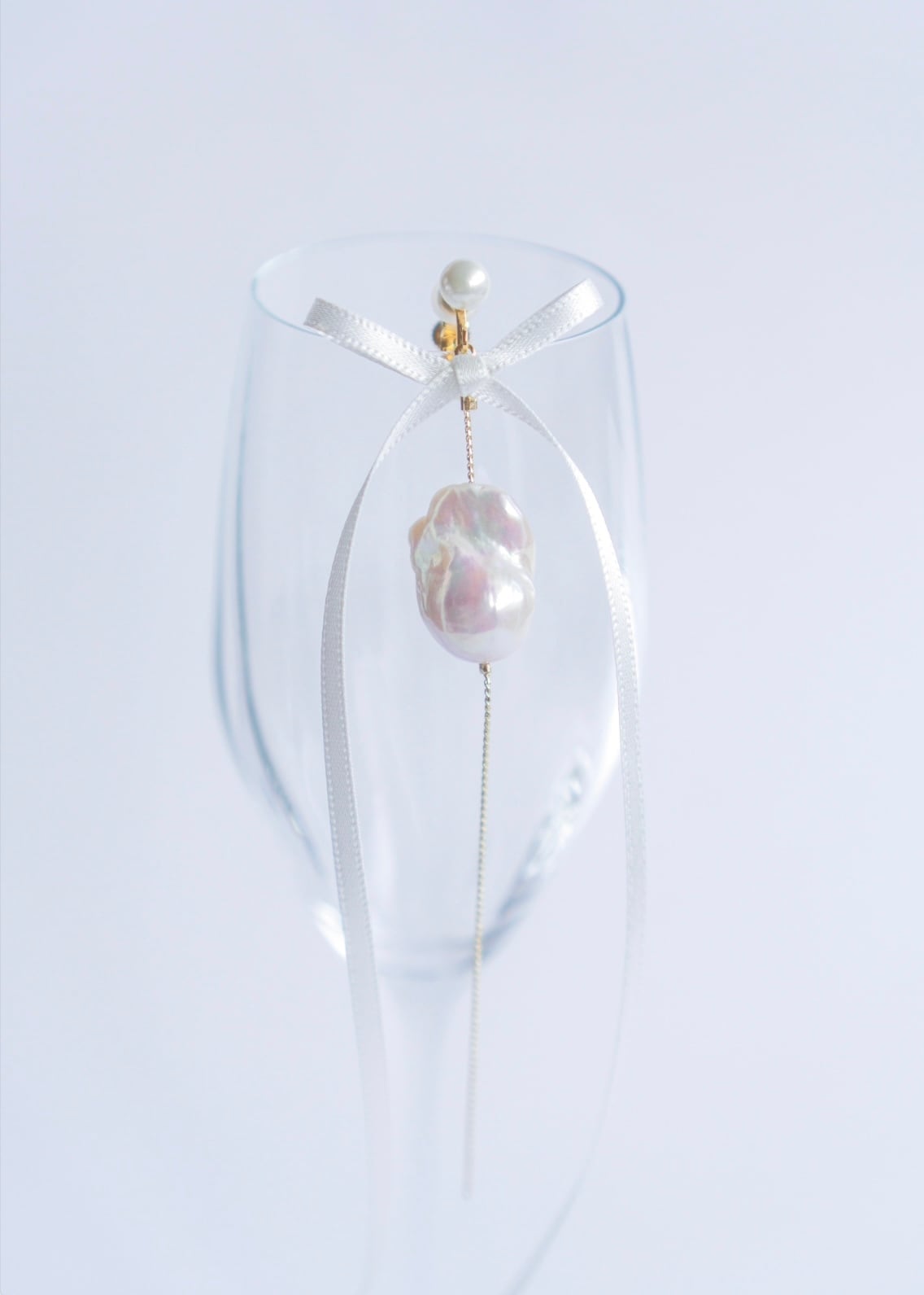 高級感あふれる美しい艶のSランク天然バロックパールに華奢なチェーンとサテンリボン。