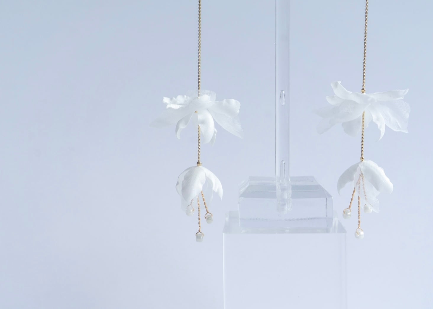 1枚1枚コテ当てし作り出される美しい曲線の花びらが上品に揺れるブライダルイヤリング/ピアス。