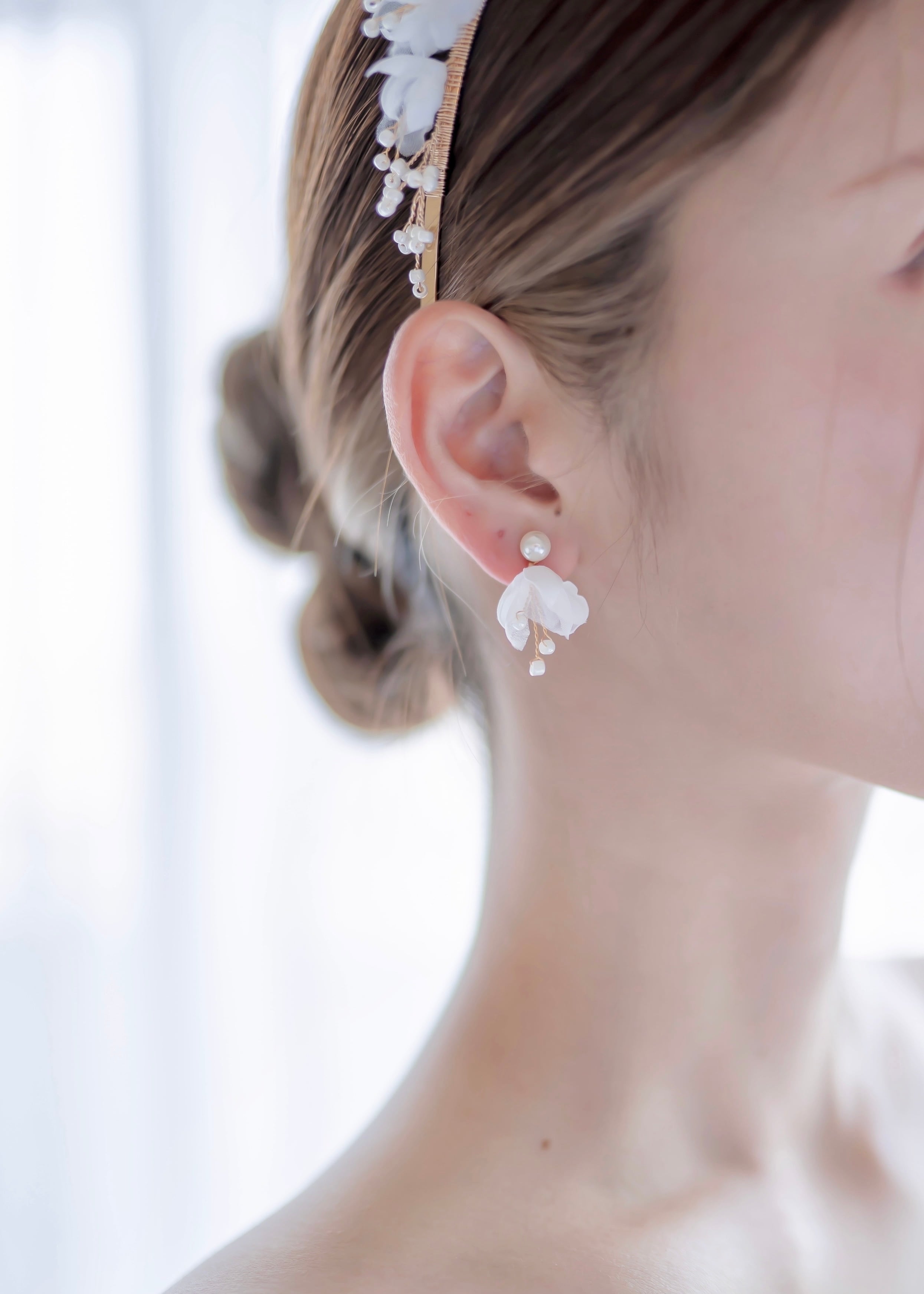 スノーフレークのお花のように純粋で清らかな美しさのあるブライダルイヤリング/ピアス。